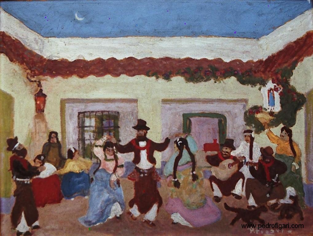 Cx-09 - Pedro Figari - El palito (óleo s/cartón) - creole dance (oil on cardboard) - 52x68cm