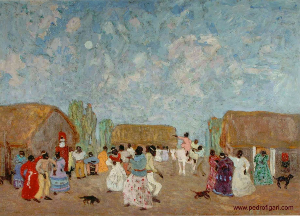 Ex-03 - Pedro Figari - La plaza del pueblo (óleo s/cartón) - The Village Square (oil on cardboard) - 60x100cm