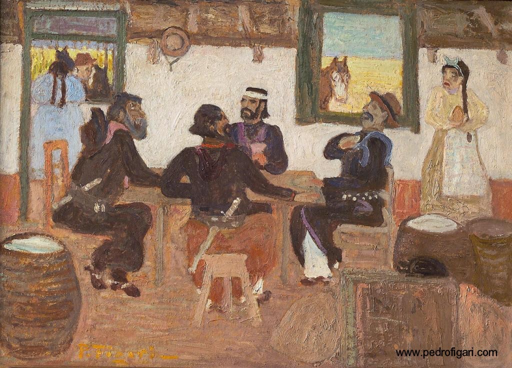 F-12 - Pedro Figari - Jugando al truco (óleo s/cartón) - Playing "Truco" (oil on cardboard) - 50x70cm