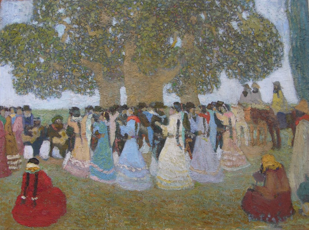G-13 - Pedro Figari - baile bajo ombúes (óleo s/cartón) - dance under the "ombúes" (oil on cardboard) - 35x50cm