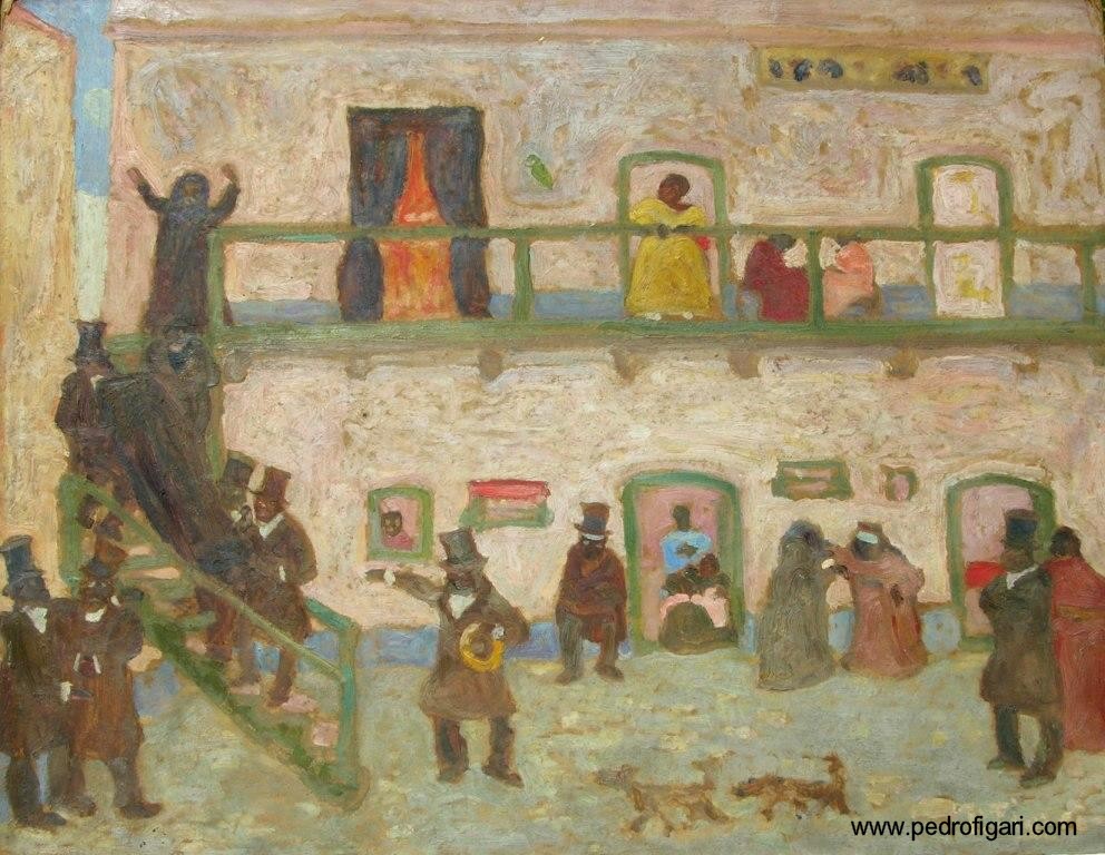 H-08 - Pedro Figari - Bajando el cajón (óleo s/cartón) - Lowering the coffin (oil on cardboard) 48x62cm