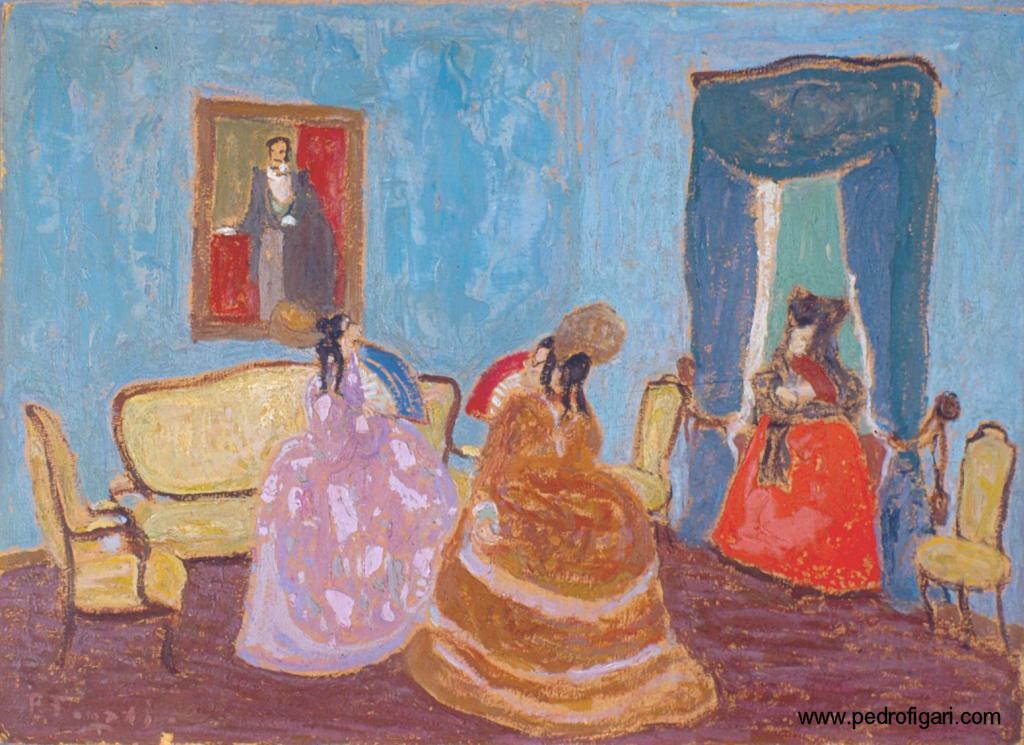 J-01 - Pedro Figari - Damas antiguas (óleo s/cartón) - Old Time Women (oil on cardboard) - 49.5x70cm