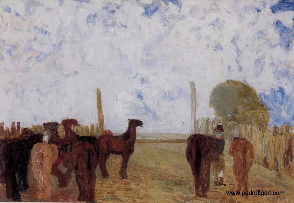 K-14 - Pedro Figari - Corral de La Porteña (Corral de palo a pique) (óleo s/cartón) (oil on cardboard)