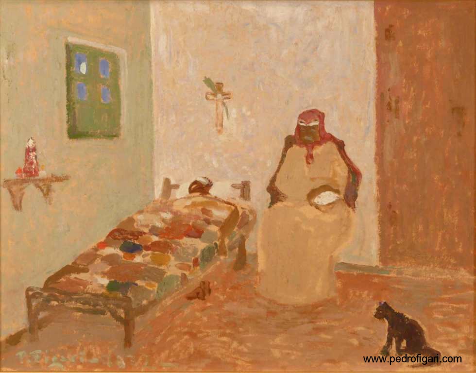 M-04 - Pedro Figari - El enfermo (óleo s/cartón) - The Sick Man (oil on cardboard) - 49.5x64.5cm