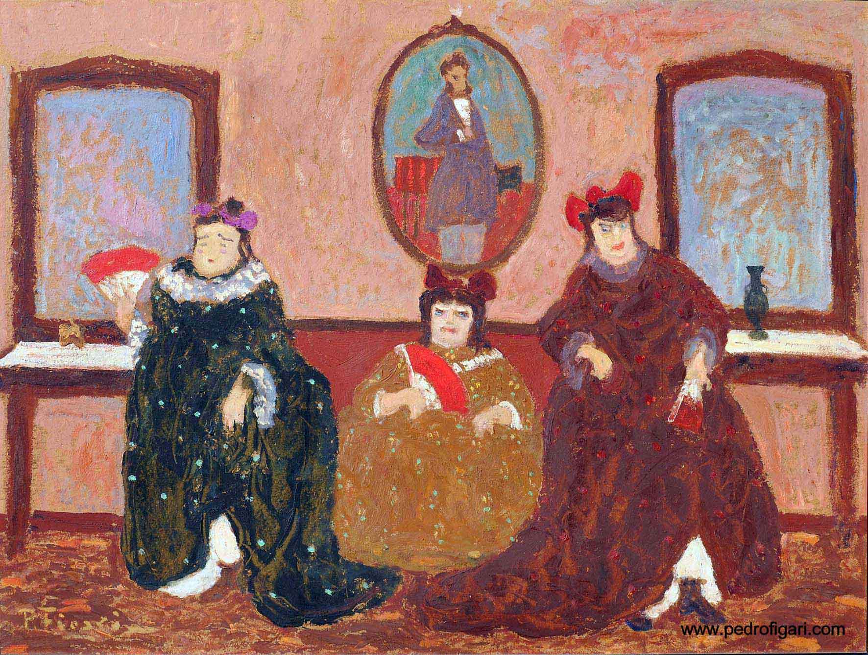 N-12 - Pedro Figari - Damas antiguas (óleo s/cartón) - Old Time Ladies (oil on cardboard) - 60x80cm