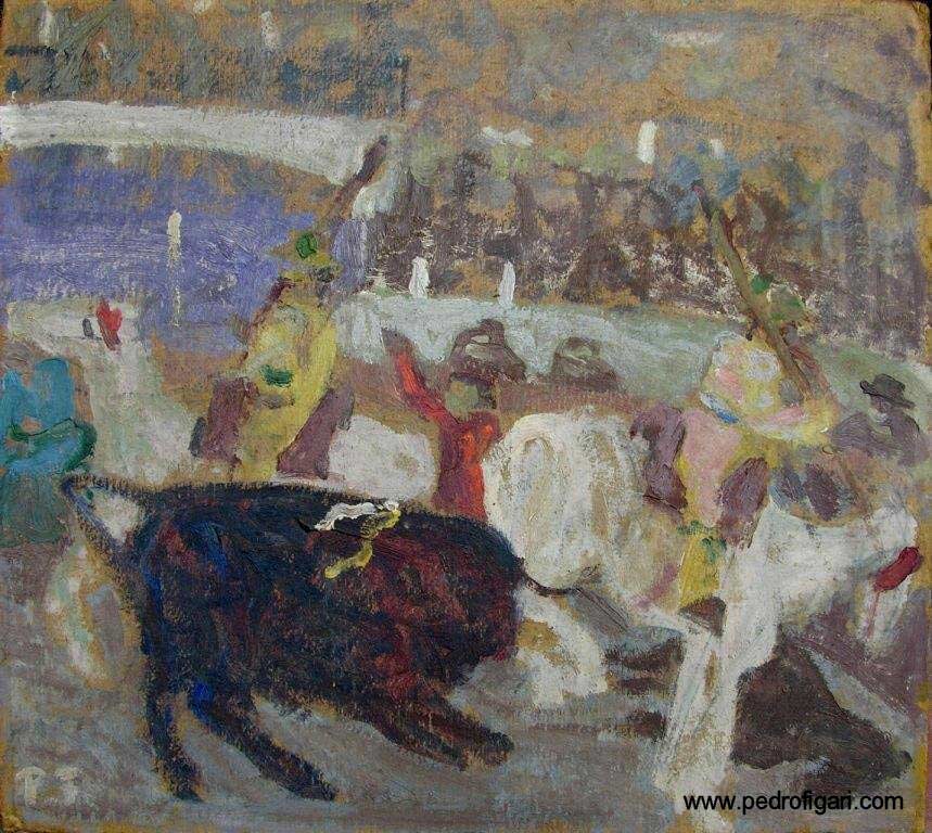 O-07 - Pedro Figari - Toros (óleo s/cartón) - Bulls (oil on cardboard) - 30x33cm