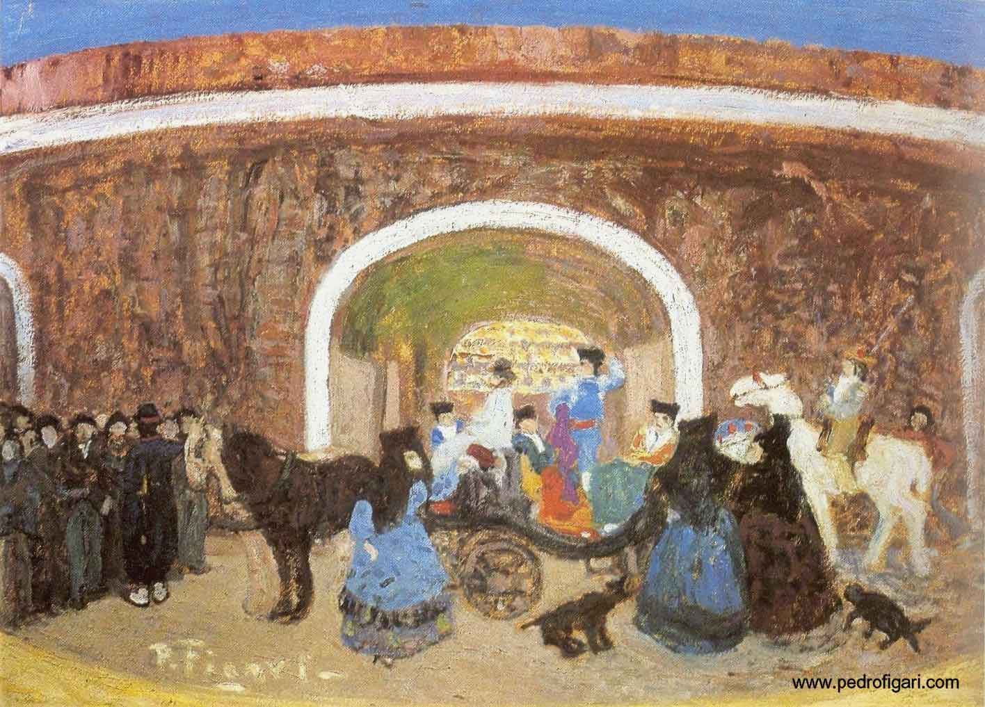 Ox-02 - La llegada a los toros (óleo s/cartón) - Arrival at the bullfights (oil on cardboard) - 50x69cm