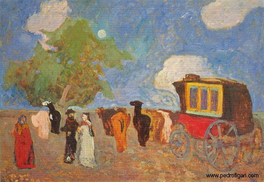 U-07 - Pedro Figari - Diligencia (óleo s/cartón) - Stagecoach (oil on cardboard) - 49x70